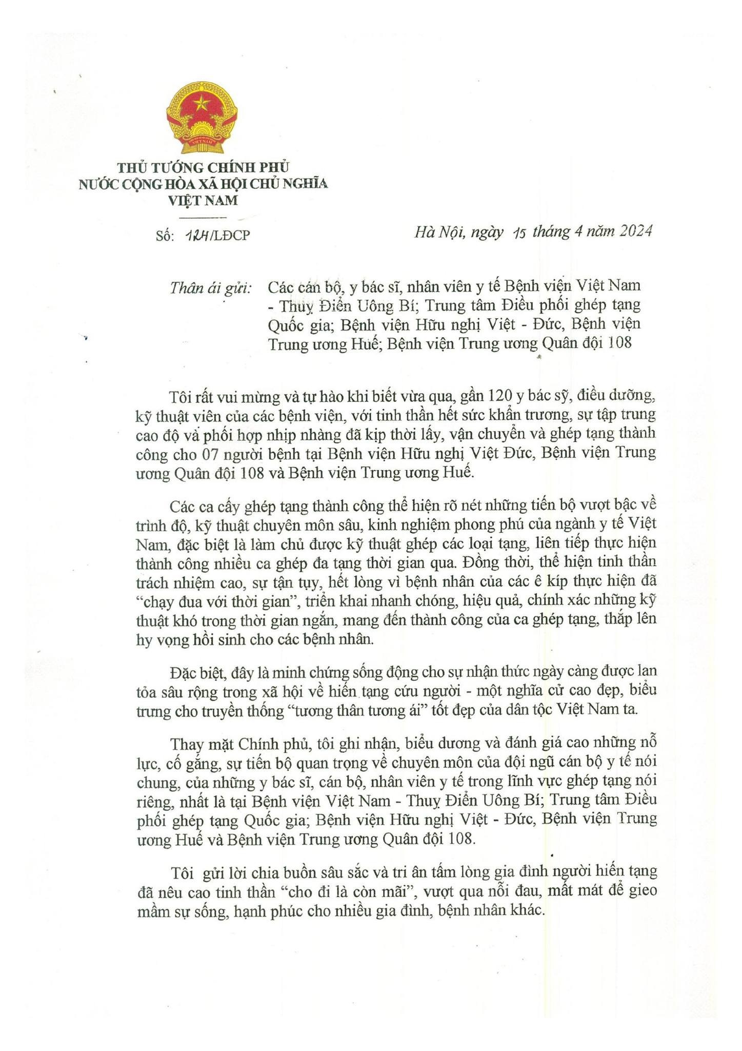 Trung tâm Điều phối Ghép tạng Quốc gia trân trọng…