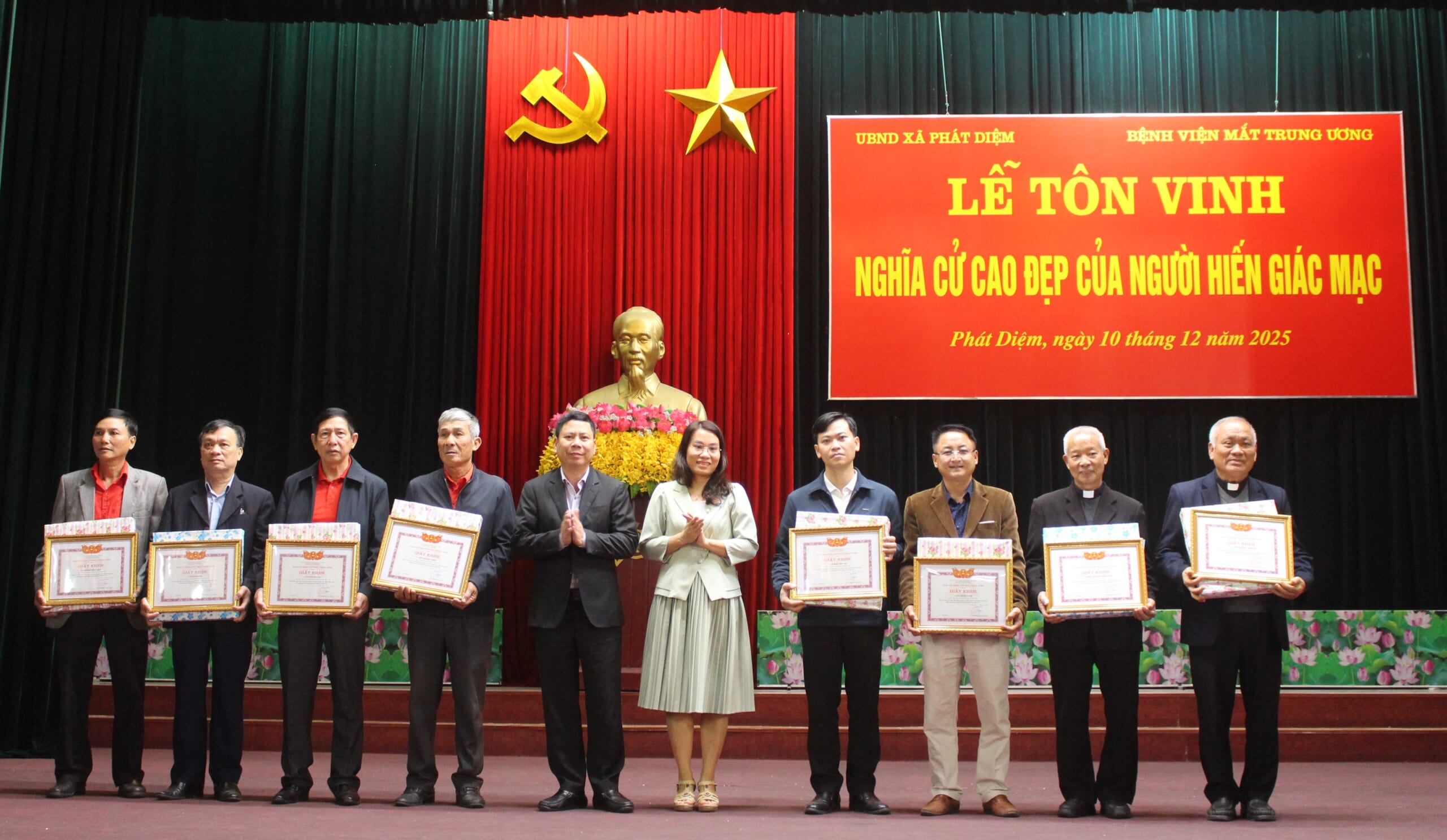 Sáng ngày 10/12, tại xã Phát Diệm (tỉnh Ninh Bình), Bệnh viện Mắt Trung ương phối hợp với UBND xã Phát Diệm tổ chức “Lễ tôn vinh nghĩa cử cao đẹp của người hiến tặng giác mạc”, nhằm tri ân những tấm lòng đã mang lại ánh sáng cho người bệnh.