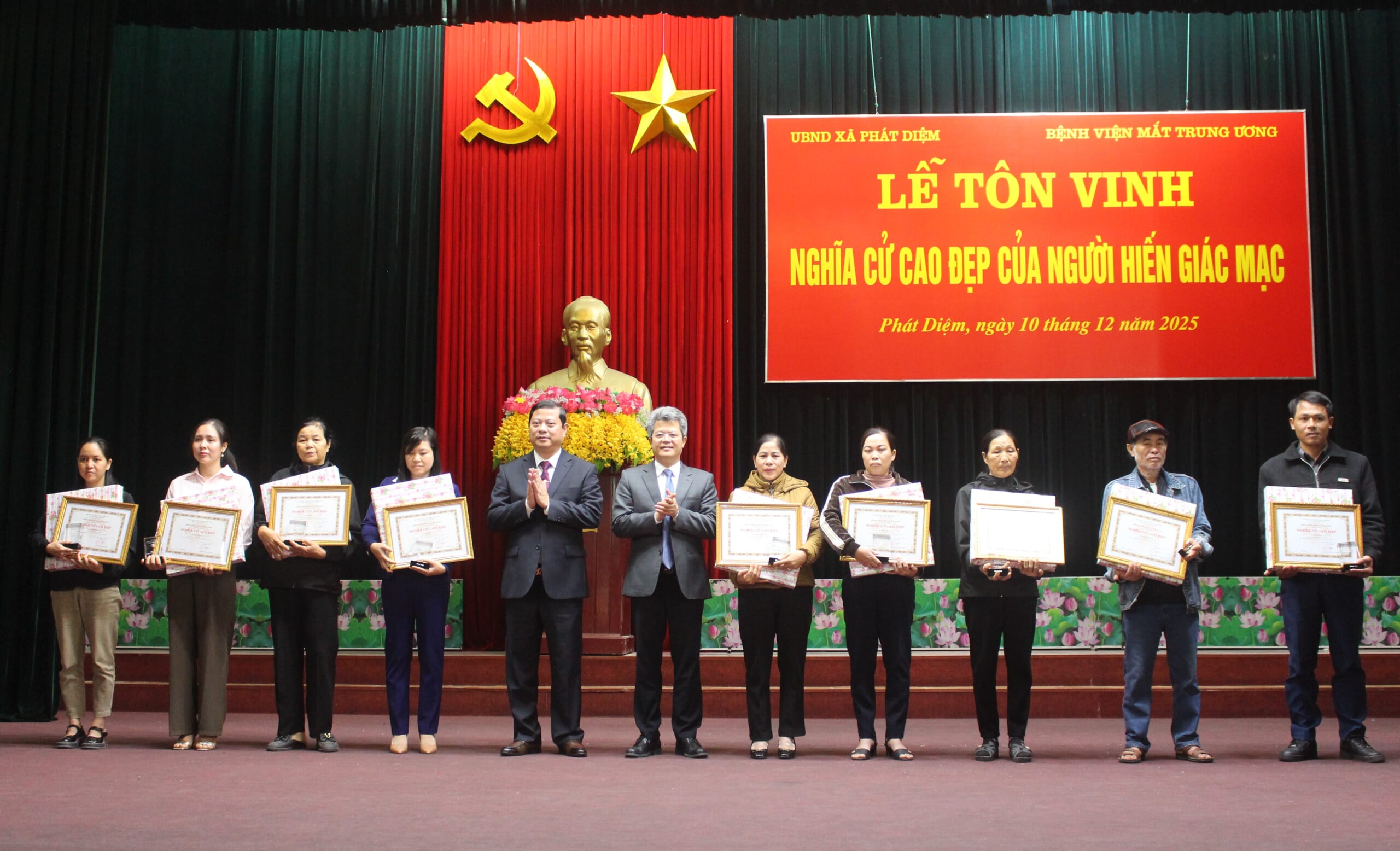 Sáng ngày 10/12, tại xã Phát Diệm (tỉnh Ninh Bình), Bệnh viện Mắt Trung ương phối hợp với UBND xã Phát Diệm tổ chức “Lễ tôn vinh nghĩa cử cao đẹp của người hiến tặng giác mạc”, nhằm tri ân những tấm lòng đã mang lại ánh sáng cho người bệnh.